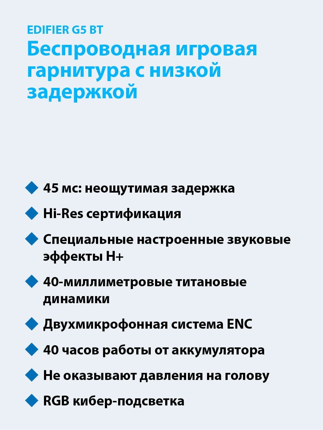 Беспроводная игровая гарнитура Edifier G5 BT Black Black 7 073 ₽