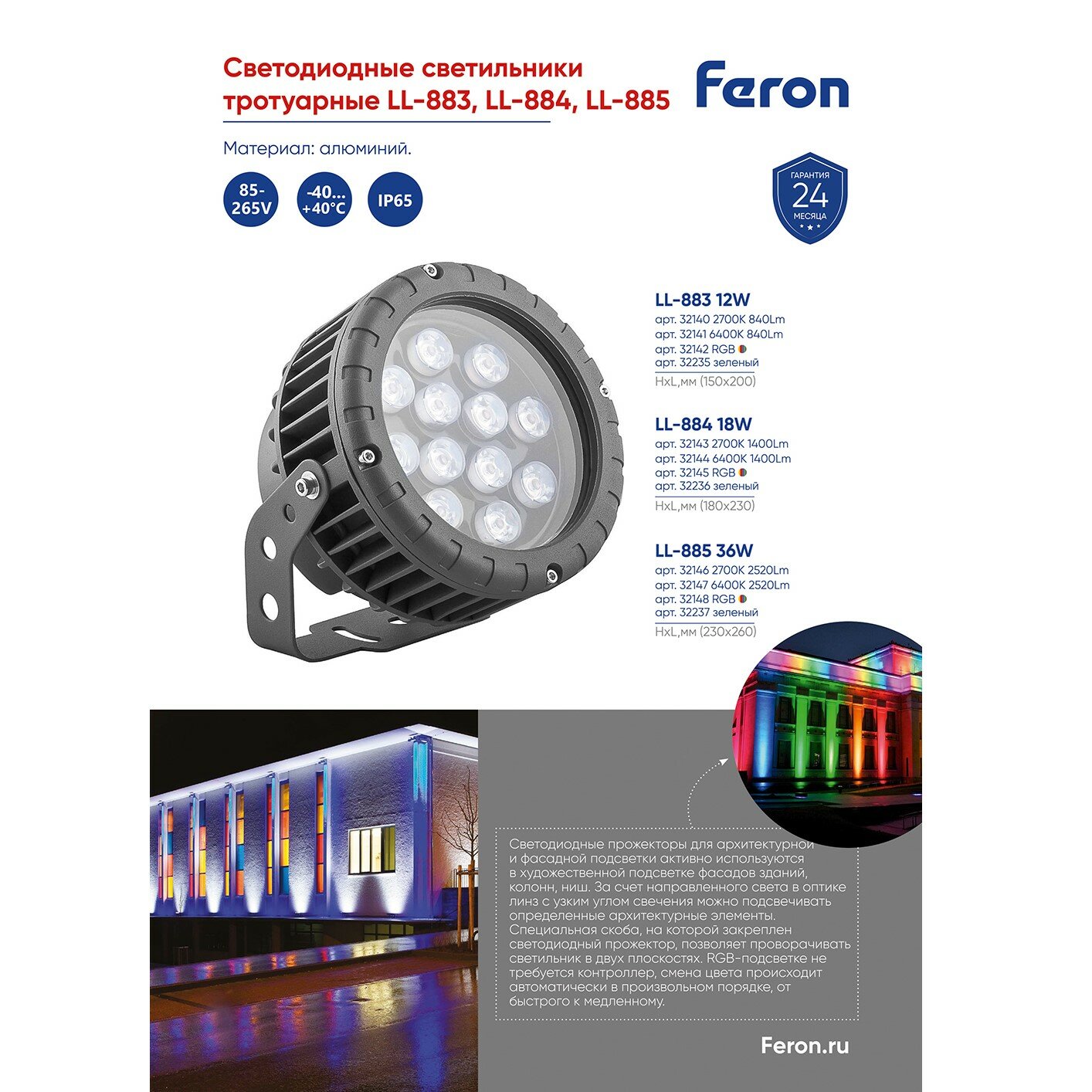 Светодиодный светильник ландшафтно-архитектурный Feron LL-884 85-265V 18W 6400K IP65 fr_32144