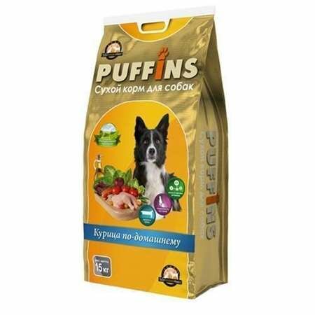 Puffins Корм для собак сухой с курицей, 15 кг информация: