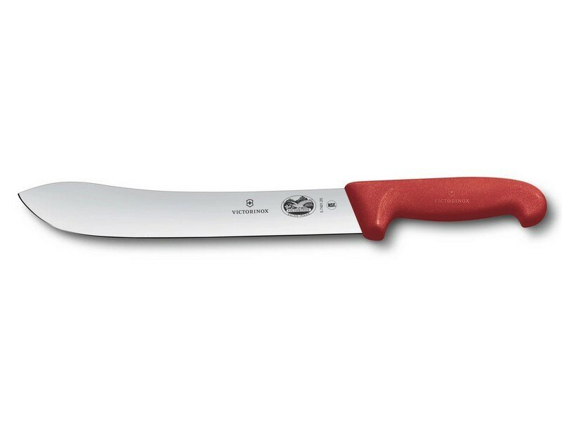 Отзывы на Нож кухонный Victorinox Fibrox Butchers knife, разделочный, 250мм, заточка прямая, стальной, красный [5.7401.25]
