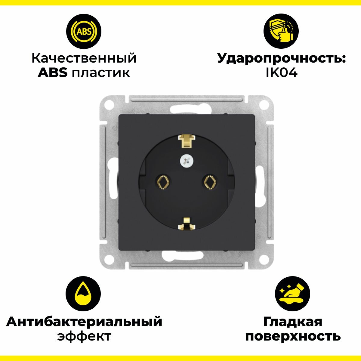 Schneider Electric AtlasDesign Розетка с заземлением, 16А, механизм розетки, цвет Черный (Карбон) ATN001043 10шт