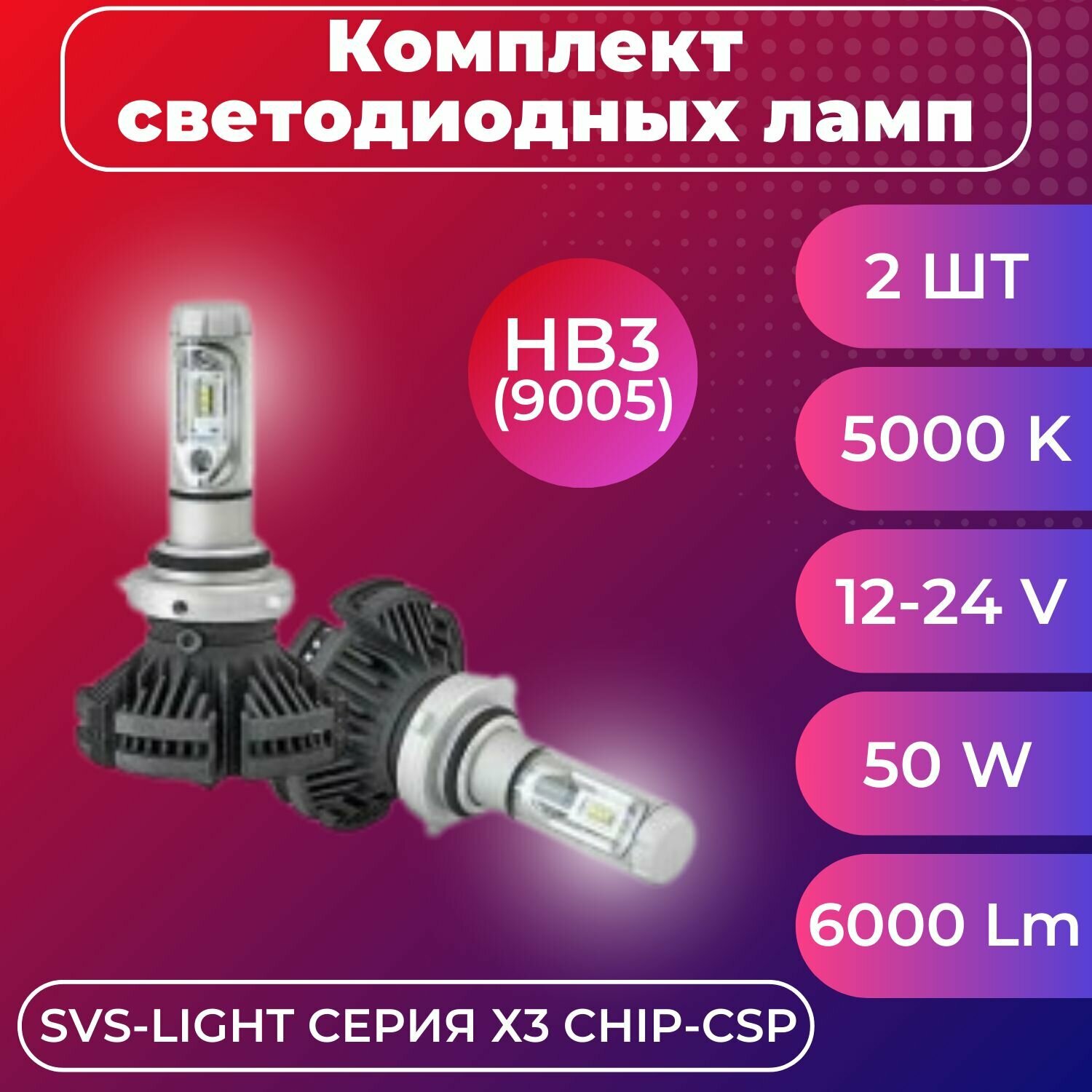 0240477000 SVS Комплект светодиодных ламп SVS HB3(9005) серии X3 (CSP-чип/6000Lm/5000K/9-32V/50W)