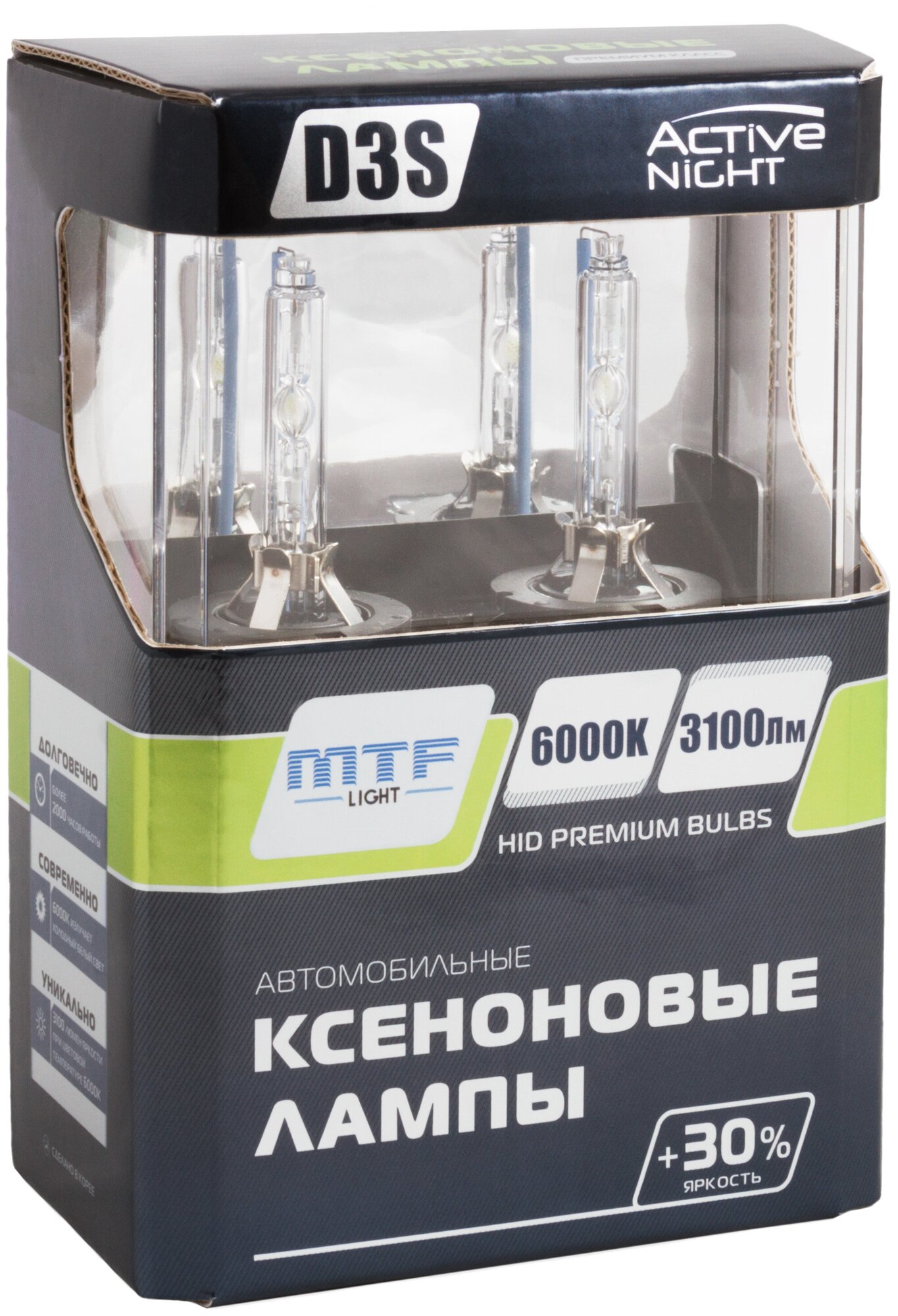 10 цен на Ксеноновые лампы MTF Light D3S ACTIVE NIGHT +30% / 42V, 35W, 3100Lm, 6000K, 2шт.
