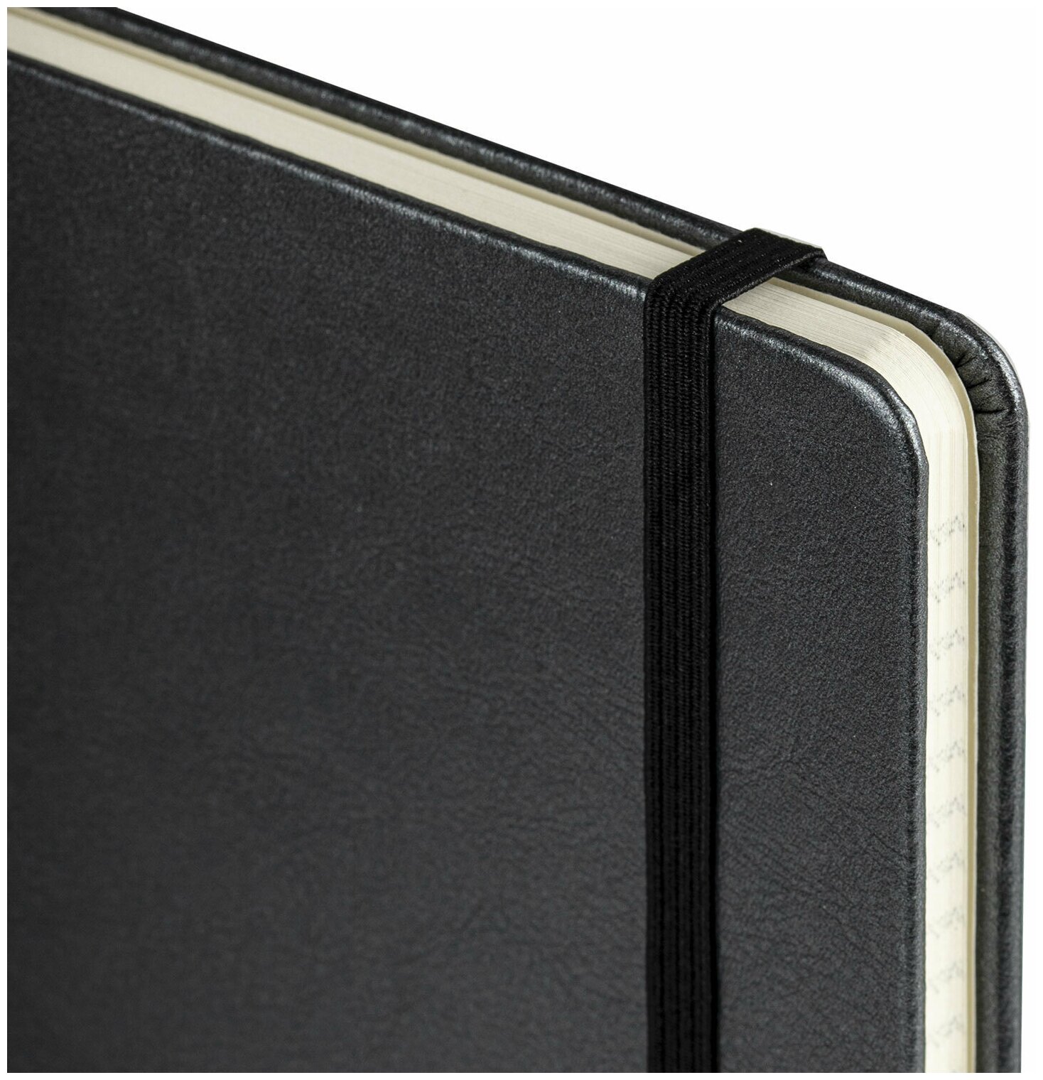 Бизнес-блокнот, записная книжка, тетрадь А5 (148x218 мм), Brauberg Metropolis Special, под кожу, 80 л., резинка,клетка, черный, 111577