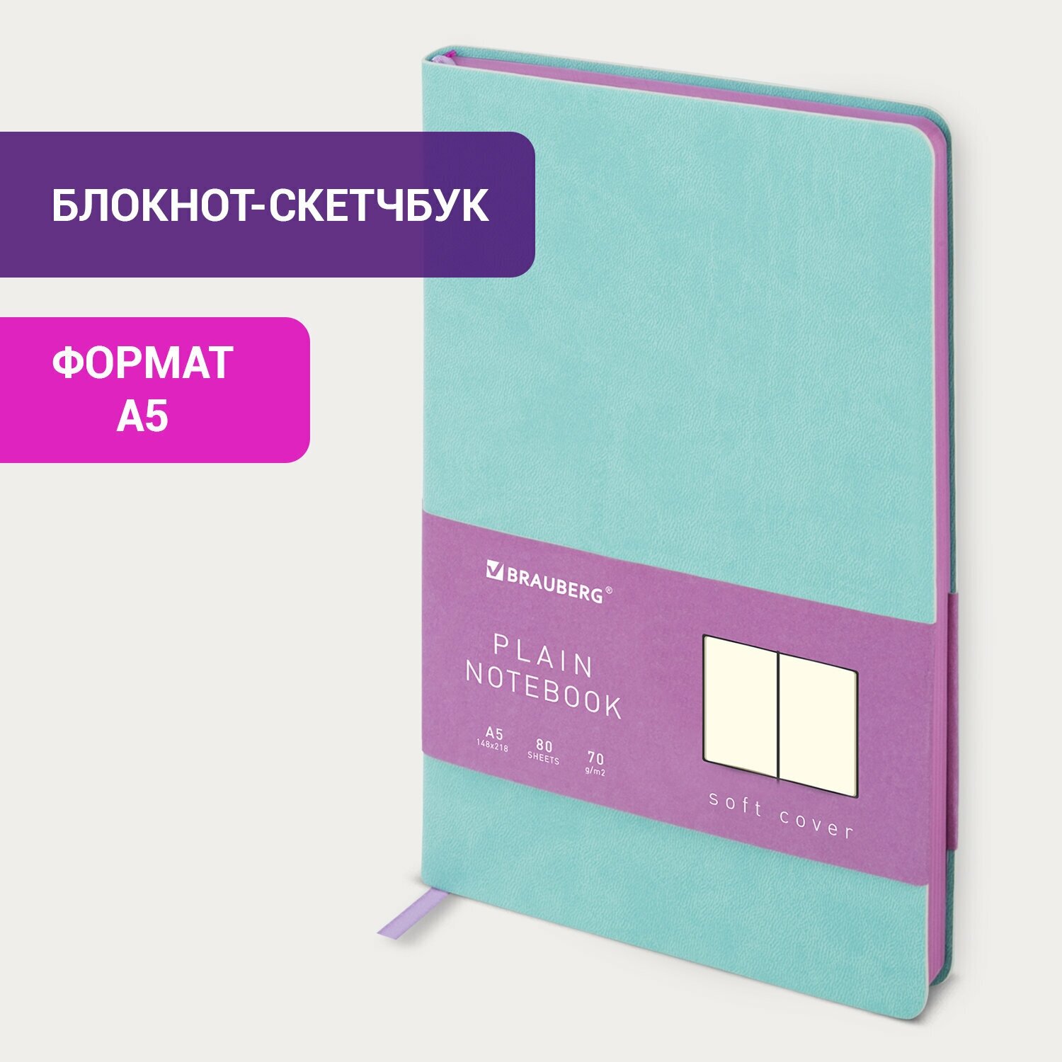 Блокнот-скетчбук Brauberg А5 148x218 мм, "Metropolis Mix", 80 листов, без линовки, мятный (113319)