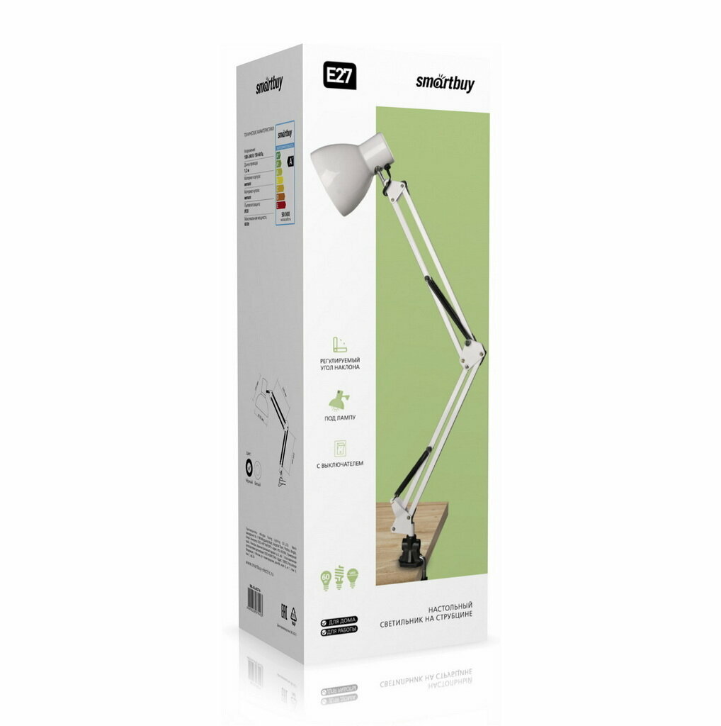 Настольный светильник Smartbuy под лампу E27 на струбцине, белый
