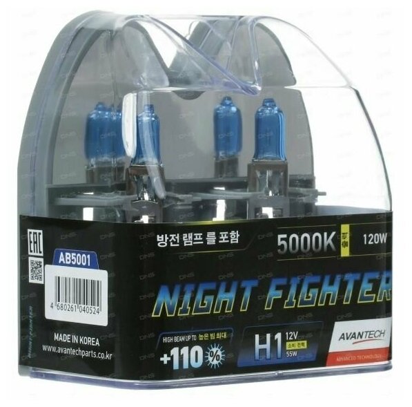 Лампа автомобильная галогеновая H1 Avantech NIGHT FIGHTER 12V 55W P14.5s 5000K (комплект 2 шт.) AB5001