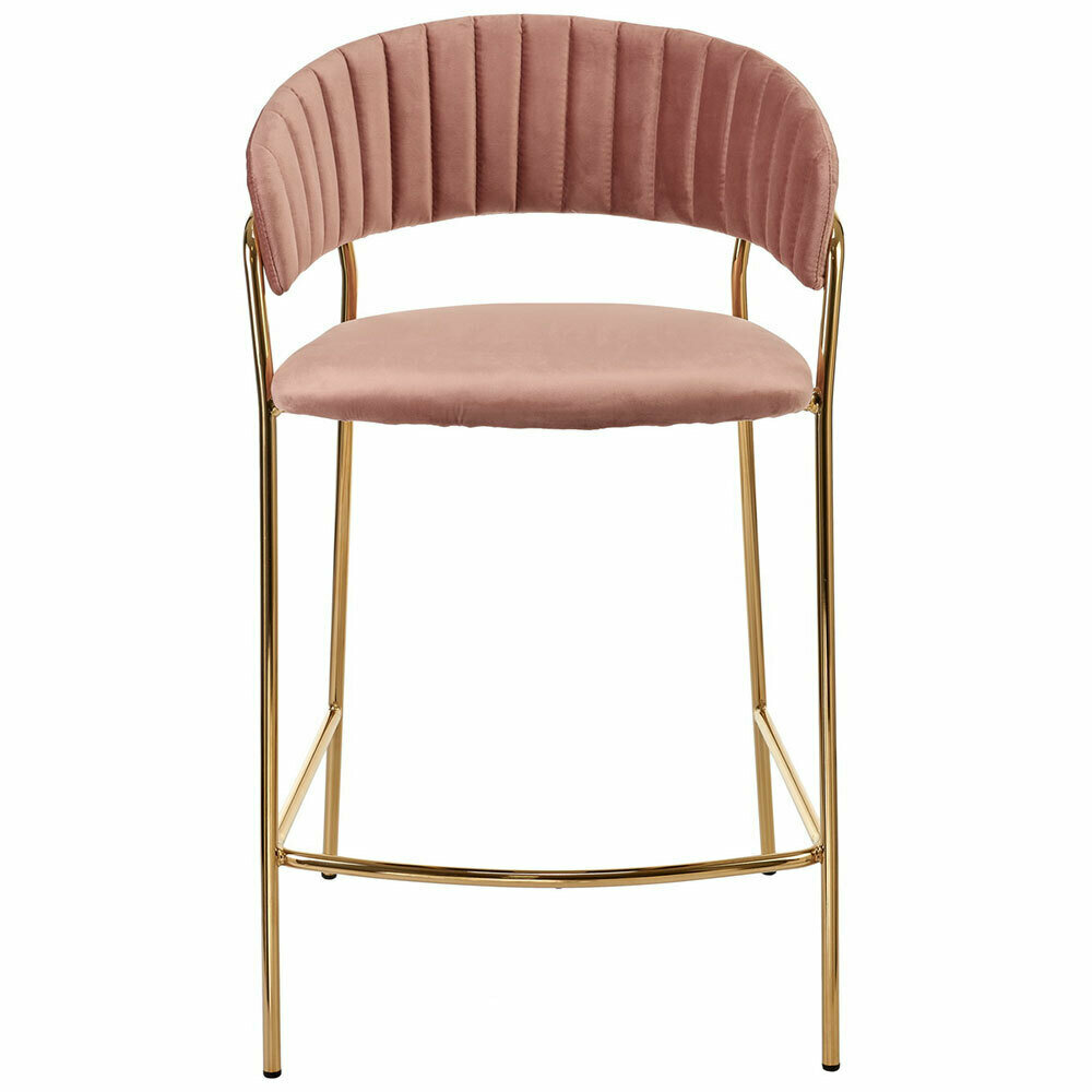 Стулья для кухни 2 шт полубарные мягкие со спинкой велюр Turin пудровый розовый с золотыми ножками 49 340 ₽
