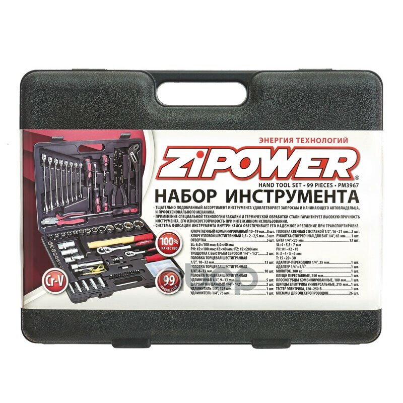 ZIPOWER PM3967 Набор инструмента, 99 предметов, Cr-V сталь