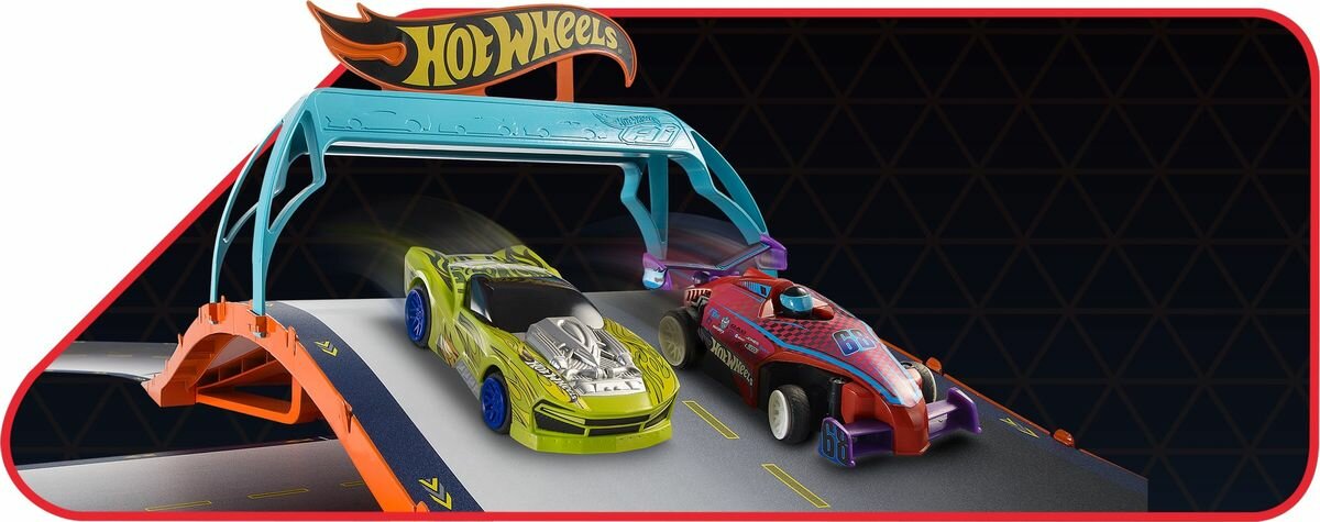 Игрушечный трек Hot Wheels RacerVerse - Транспортер Бэтмена, который трансформируется в гоночную трассу с тремя полосами - Хот Вилс HXN21
