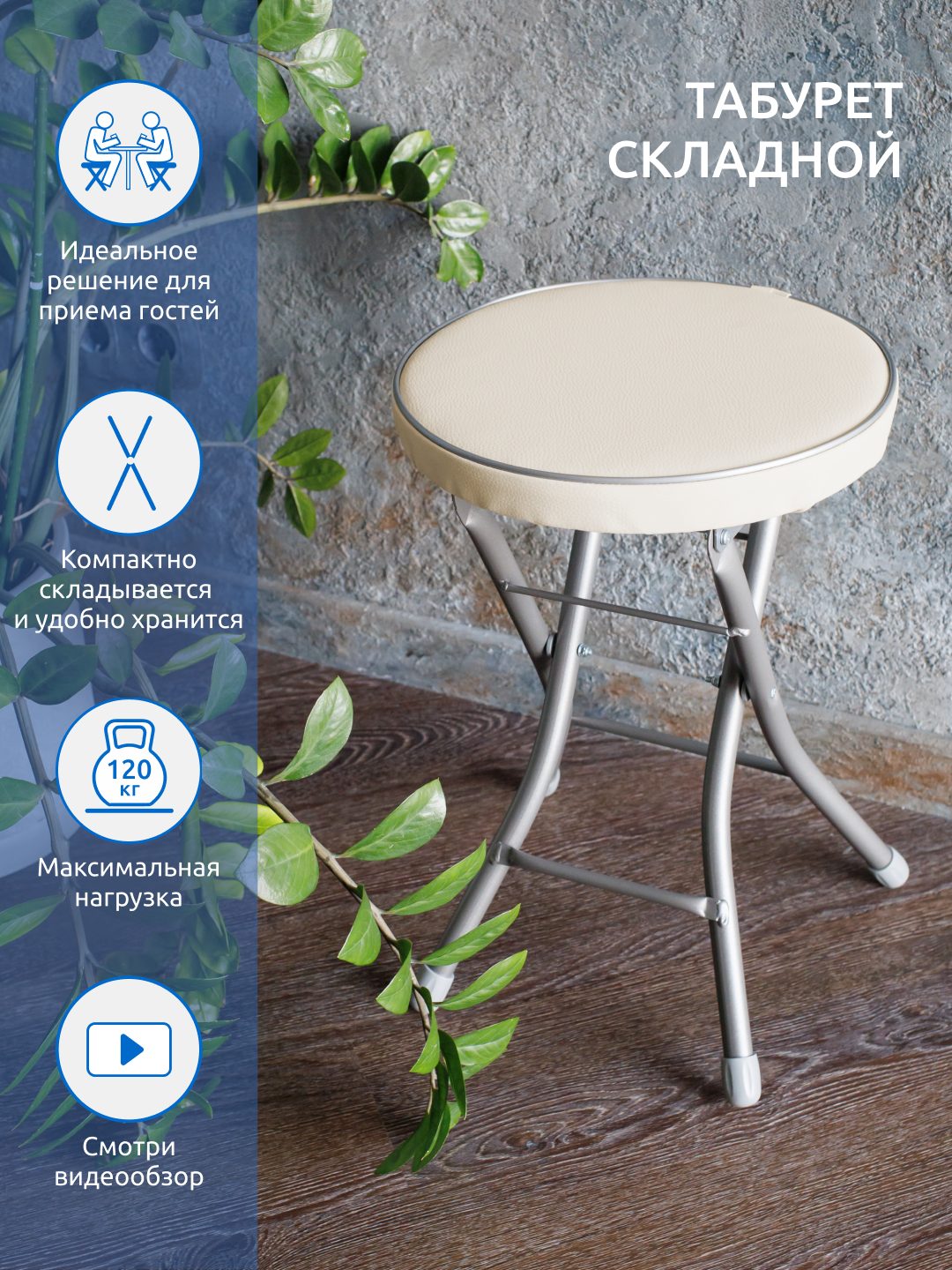 Табурет складной с мягким сидением d=32 см ТБСК1/1 Nika слоновая кость