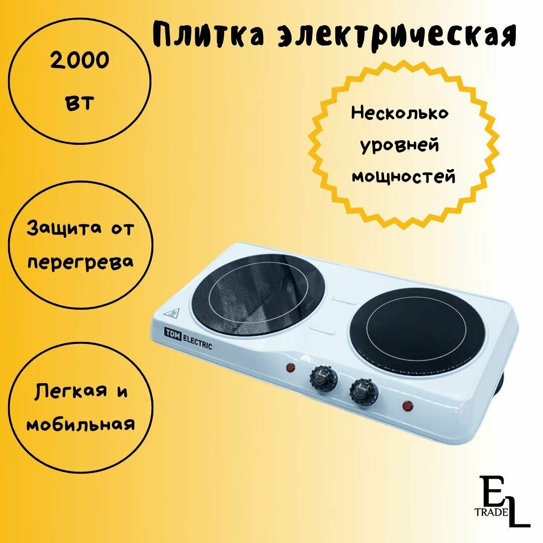 Электрическая плита TDM Electric ЭПС2 2000 Вт, 2 конфорки, эмаль, белая, механическая