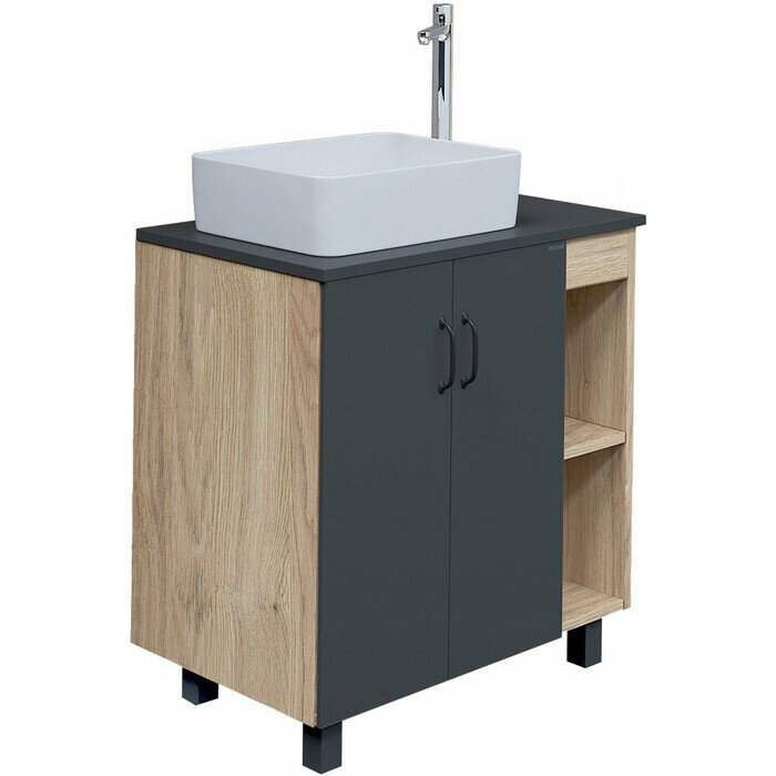 Тумба под раковину Grossman Лайф 80 винтажное дерево темное/графит