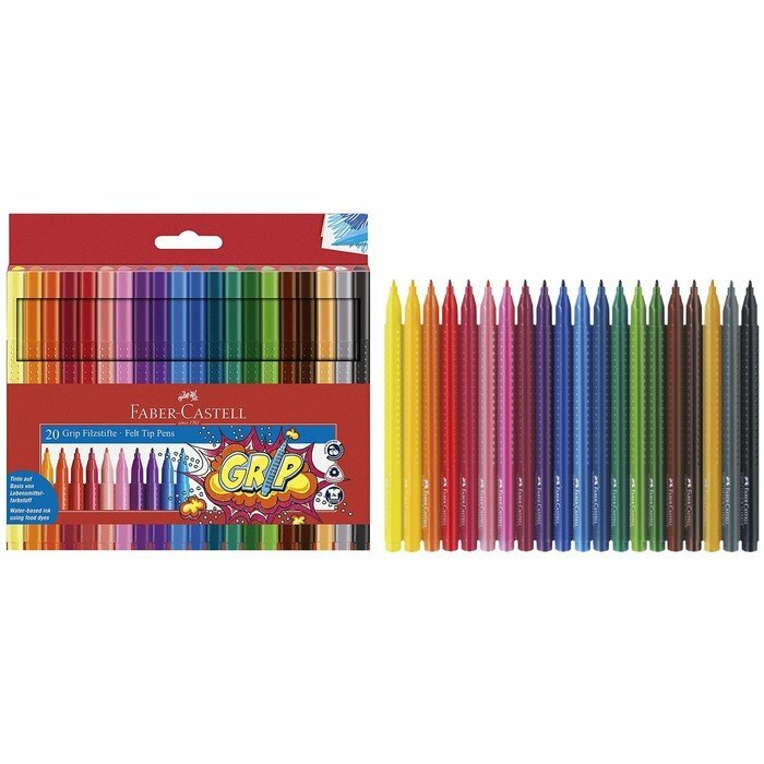 Отзывы на Набор цветных фломастеров Faber-Castell Grip, 20 штук в футляре