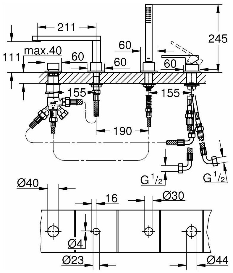 | Монтаж | на борт ванны |