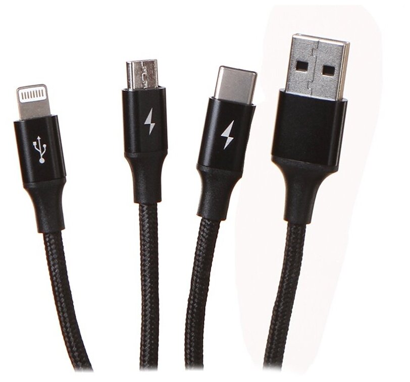 Отзывы на Кабель Baseus Rapid Series 3-in-1 Cable USB For Lightning+MicroUSB+Type-C 1.2m Black (CAJS000001)