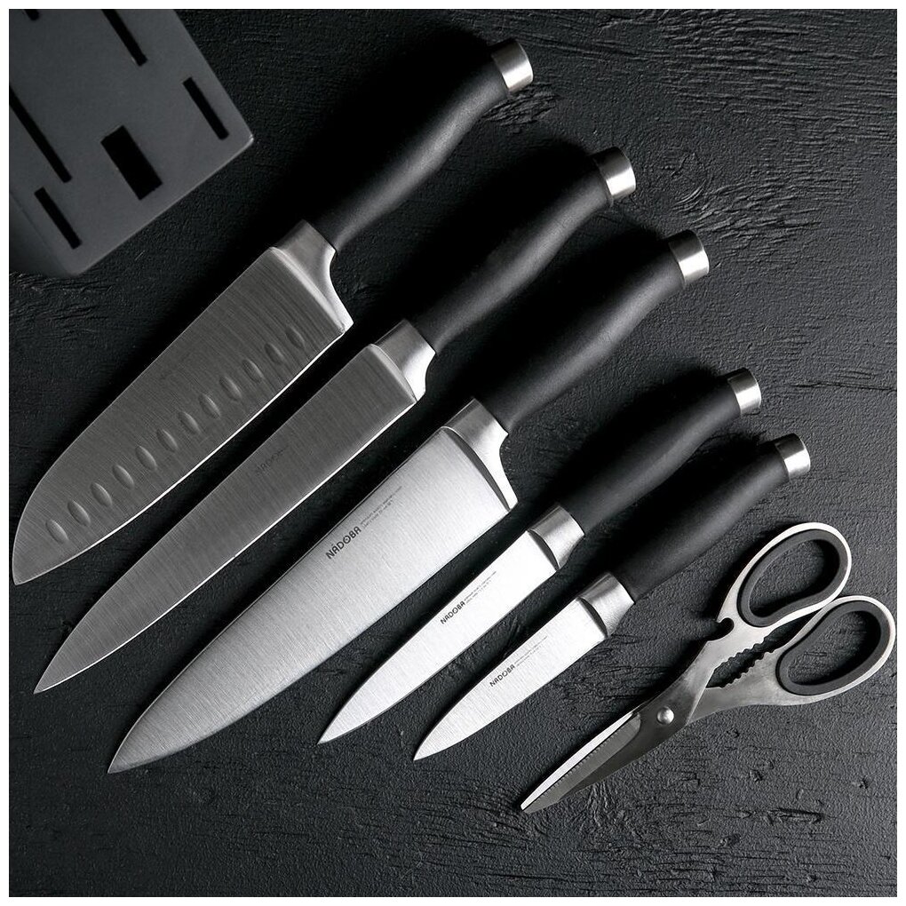 Отзывы на Набор из 5 кухонных ножей, ножниц и блока для ножей с ножеточкой, NADOBA, серия RUT
