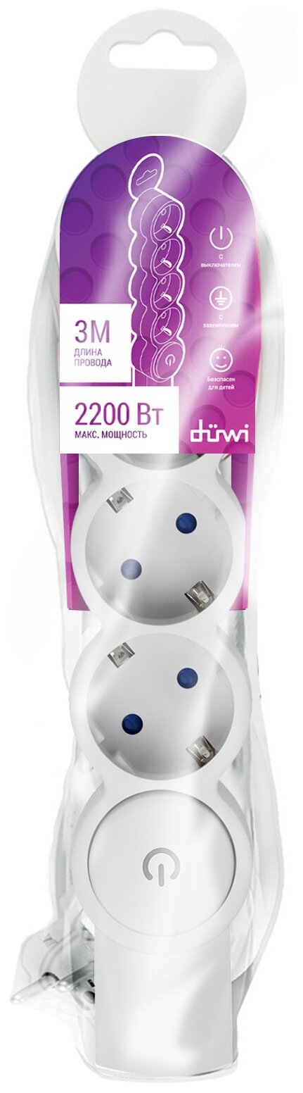 Сетевой удлинитель Duwi (32014 4), 4 розетки, 3 м, белый