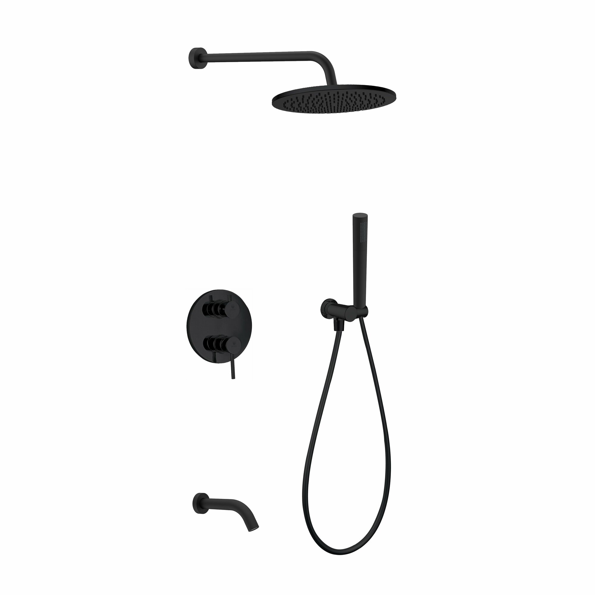 | Комплектация | встраиваемый механизм / смеситель с двухпозиционным переключением настенного монтажа / штуцер он же держатель ручного душа / латунный ручной душ / гибкий металлический шланг / латунный верхний душ |