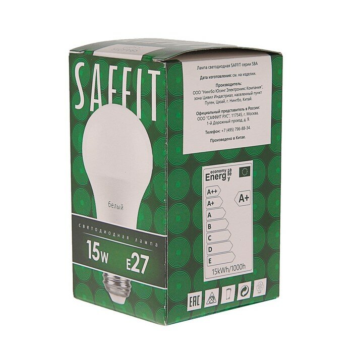 Лампа светодиодная SAFFIT SBA6015, A60, E27, 15 Вт, 230 В, 4000 К, 1500 Лм, 220°, 118х60 мм информация: