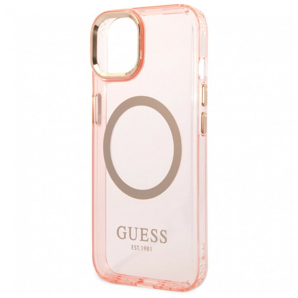 Guess Чехол Guess Metal outline Hard Translucent для iPhone 14 Plus, розовый/золотой (MagSafe)