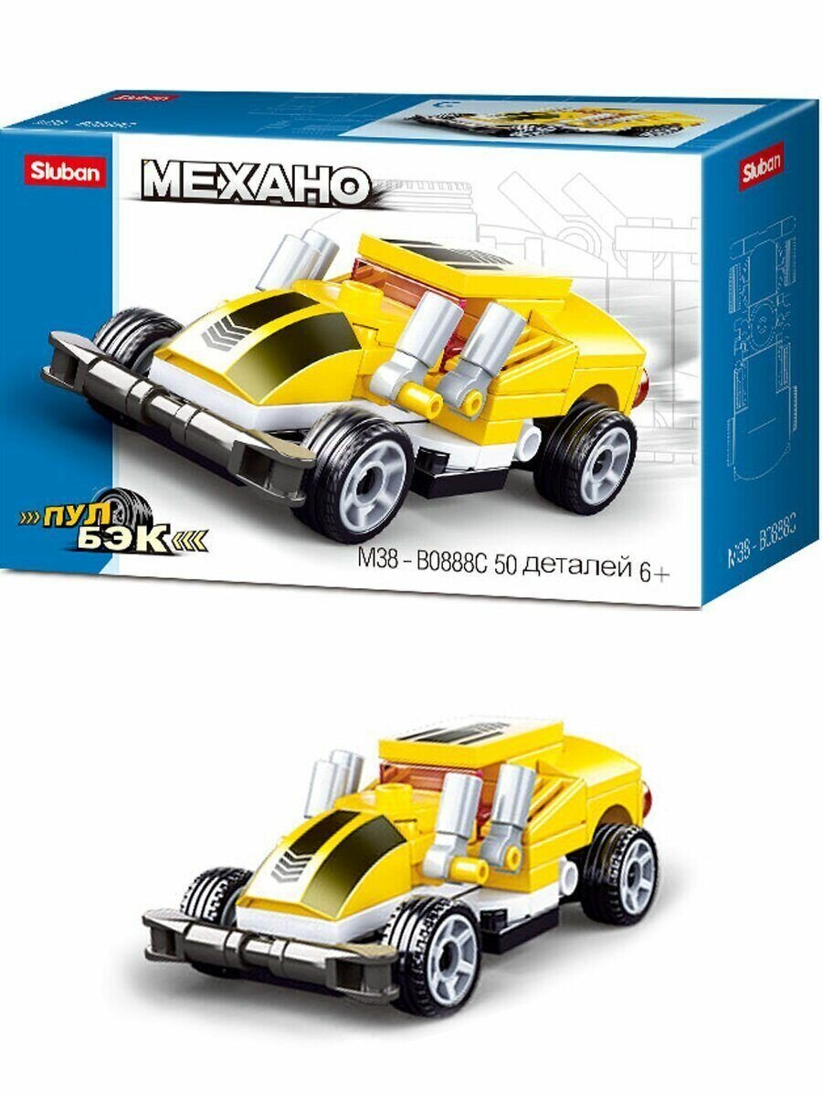 Конструктор Sluban серия "Механо", Гоночная машина, инерционная, желтая, 50 деталей (M38-B0888C)