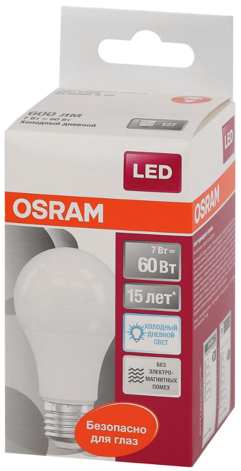 Отзывы на Лампочка светодиодная OSRAM LED Star, 600лм, 7Вт, 6500К, холодный белый свет, Цоколь E27, матовая, 1 шт