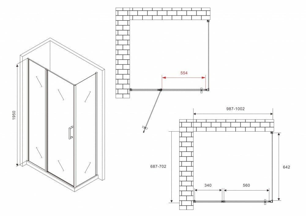 Душевое ограждение уголок SANTREK Iris-CR-900-C-Chrome 900*900*1850 Г-обр. стекло Прозр 6мм, профиль Хром