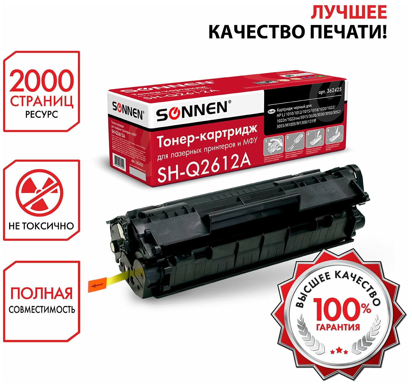 Картридж лазерный SONNEN (SH-Q2612A) для HP LaserJet 1018/3052/М1005, высшее качество, ресурс 2000 стр., 362425 (арт. 362425)