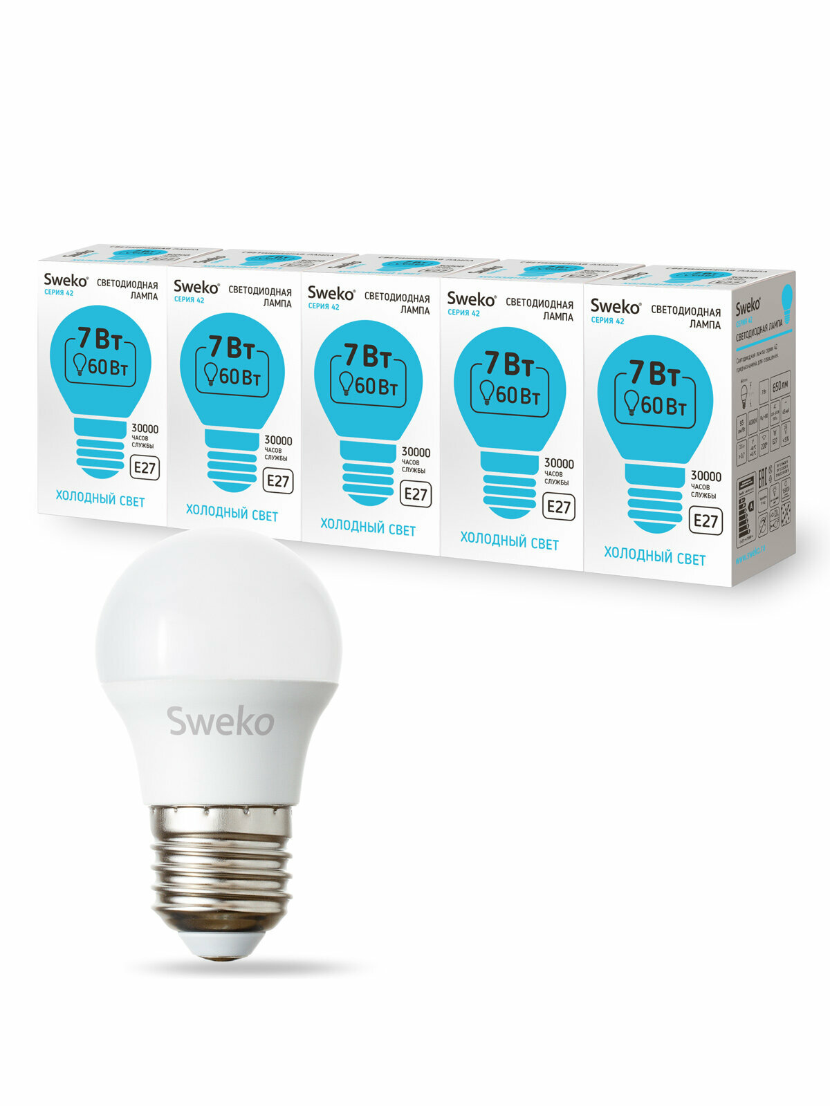 Комплект из 5 штук. Sweko Светодиодная лампа Серия 42 шар матов G45 E27 7W(650lm) 4000K 79х45 информация: