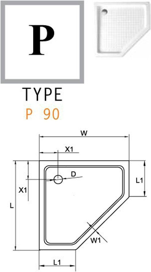 Поддон для душа CEZARES TRAY-A-P-90-15-W0, пятиугольный 90х90