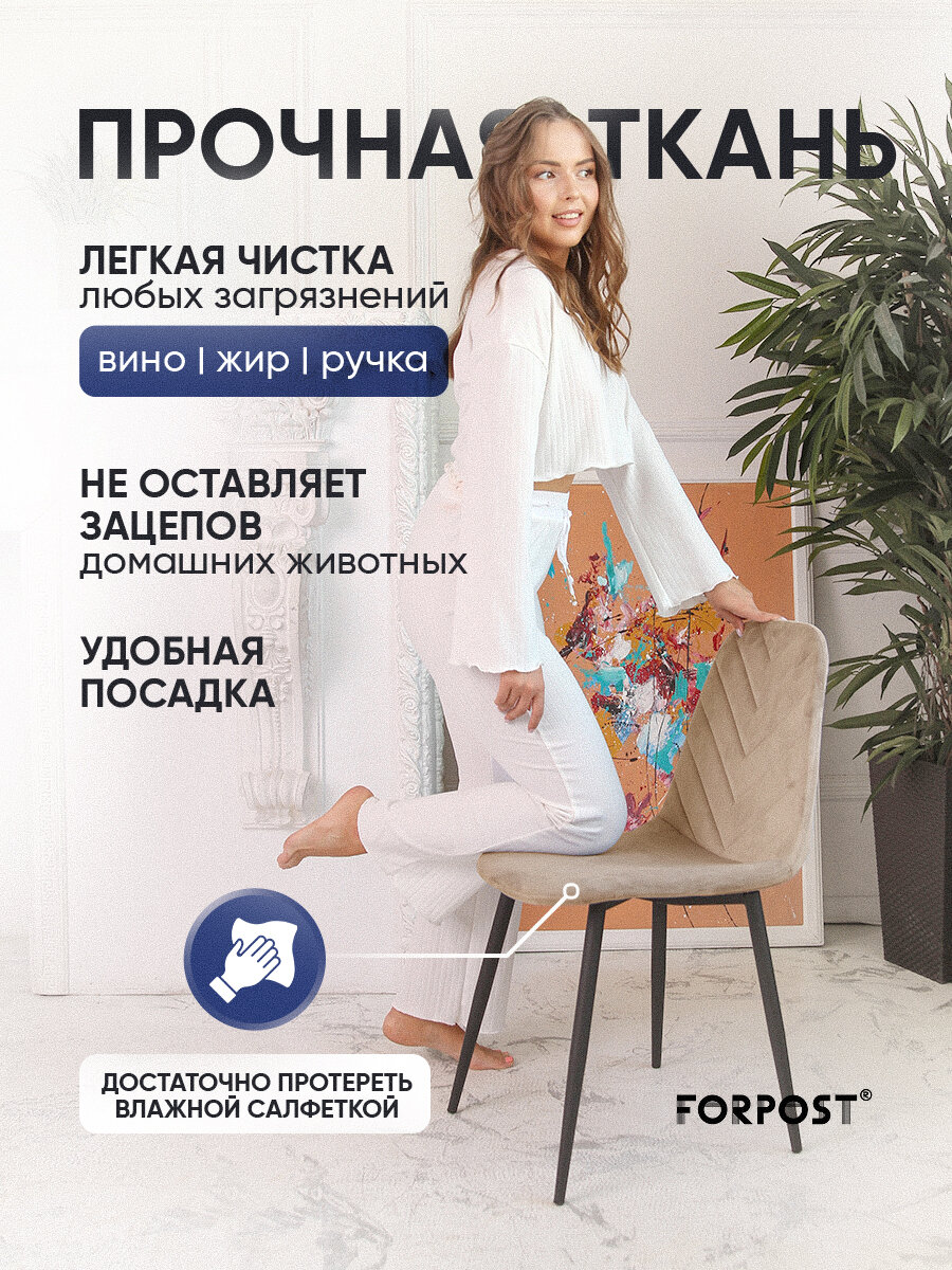 Стул для кухни мягкий со спинкой Малибу, 2 штуки крем информация: