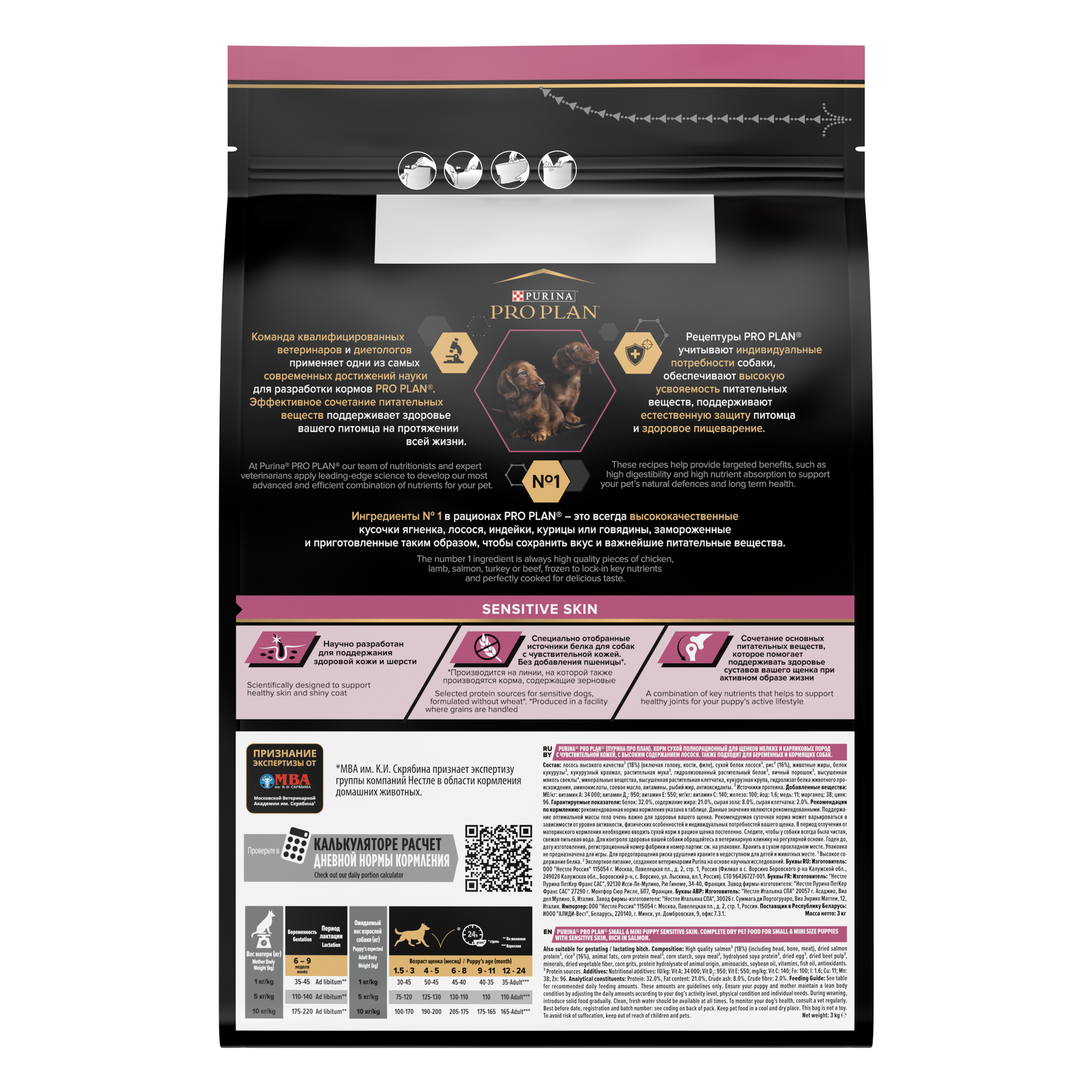Сухой корм для щенков Pro Plan с чувствительной кожей, с высоким содержанием лосося 3 кг (для мелких и карликовых пород) информация: