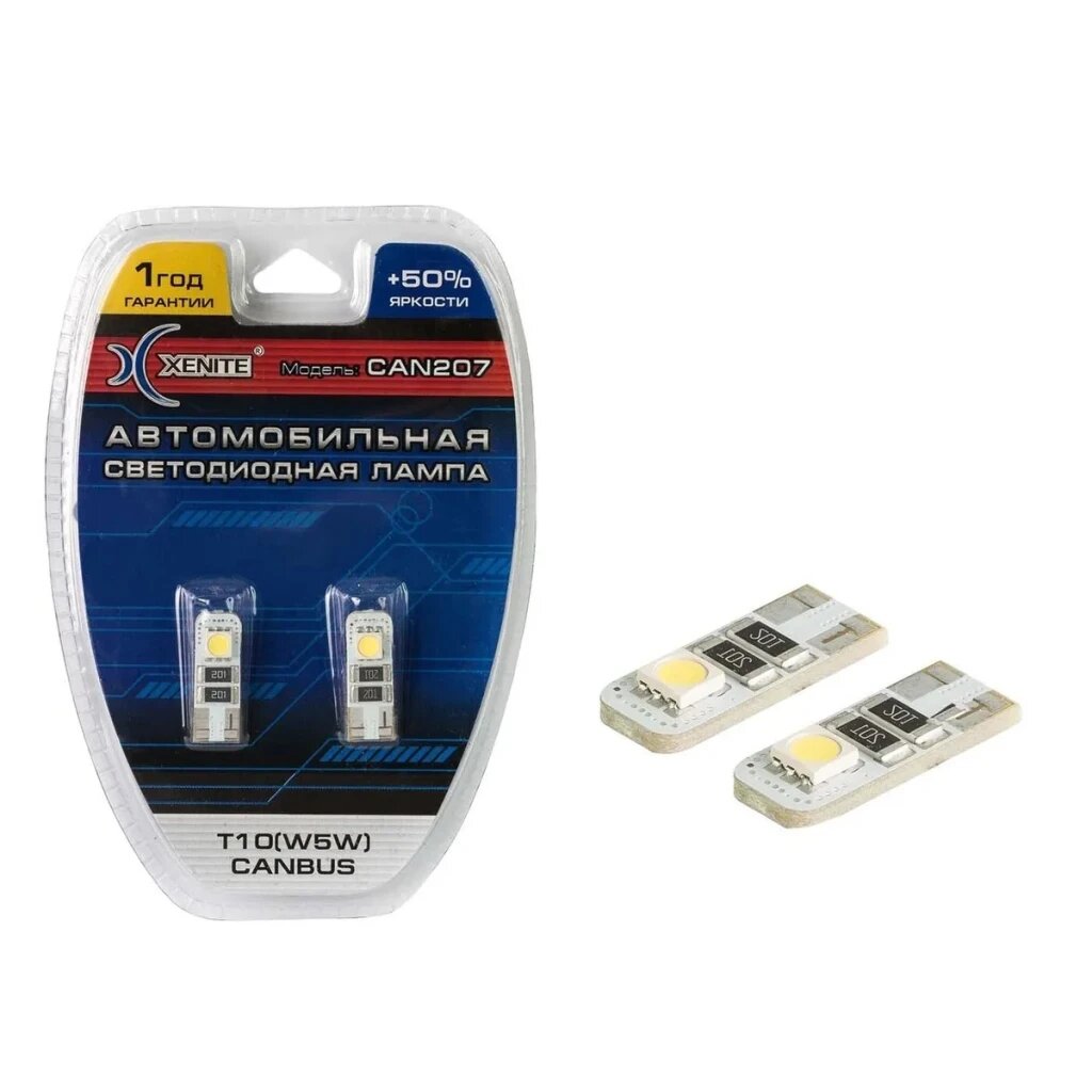 Автомобильная светодиодная лампа XENITE Can207 (встроенная обманка) (T10/W5W) 5000K 12V (блистер 2 шт.)