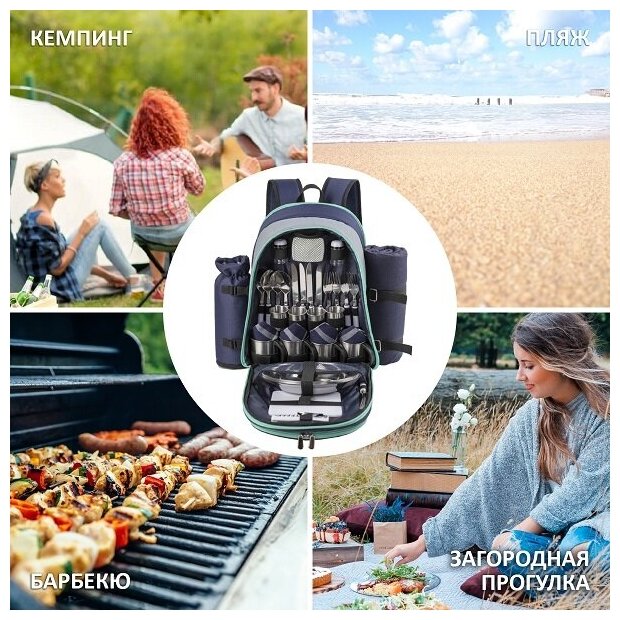 | Комплектация | - изотермическая сумка-холодильник; - тарелка 4 шт.; - чашки 4 шт.; - стаканы 4 шт.; - вилки 4 шт.; - ложки 4 шт; - нож 4 шт.; - нож для сыра/масла; - емкость для сыра/масла; - салфетки 4 шт.; - солонка; - перечница; - разделочная доска; - штопор; - плед. |