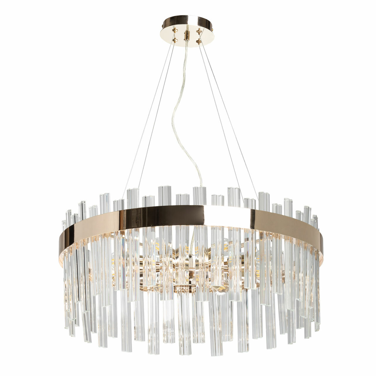 Люстра хрустальная золотая подвесная круглая с прозрачными хрустальными подвесками на 8 ламп E27, регулировка по высоте