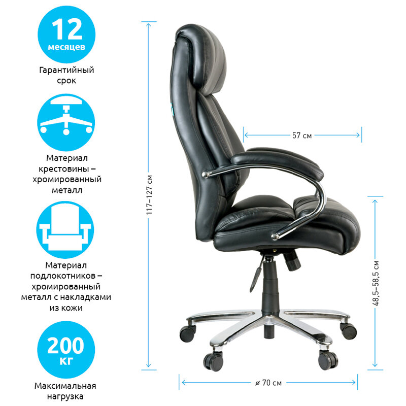Кресло руководителя Helmi "Granite", повышенная прочность, экокожа черная, хром, до 200 кг (282342) информация: