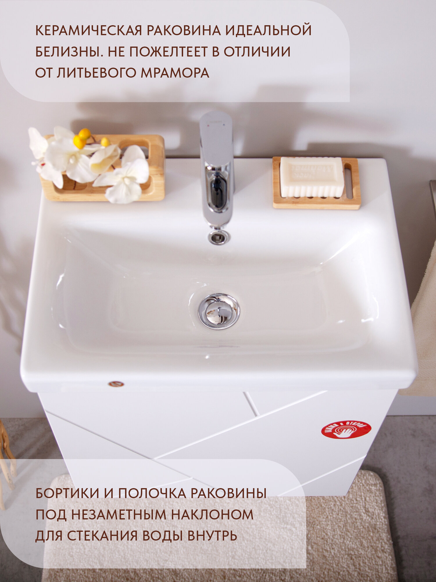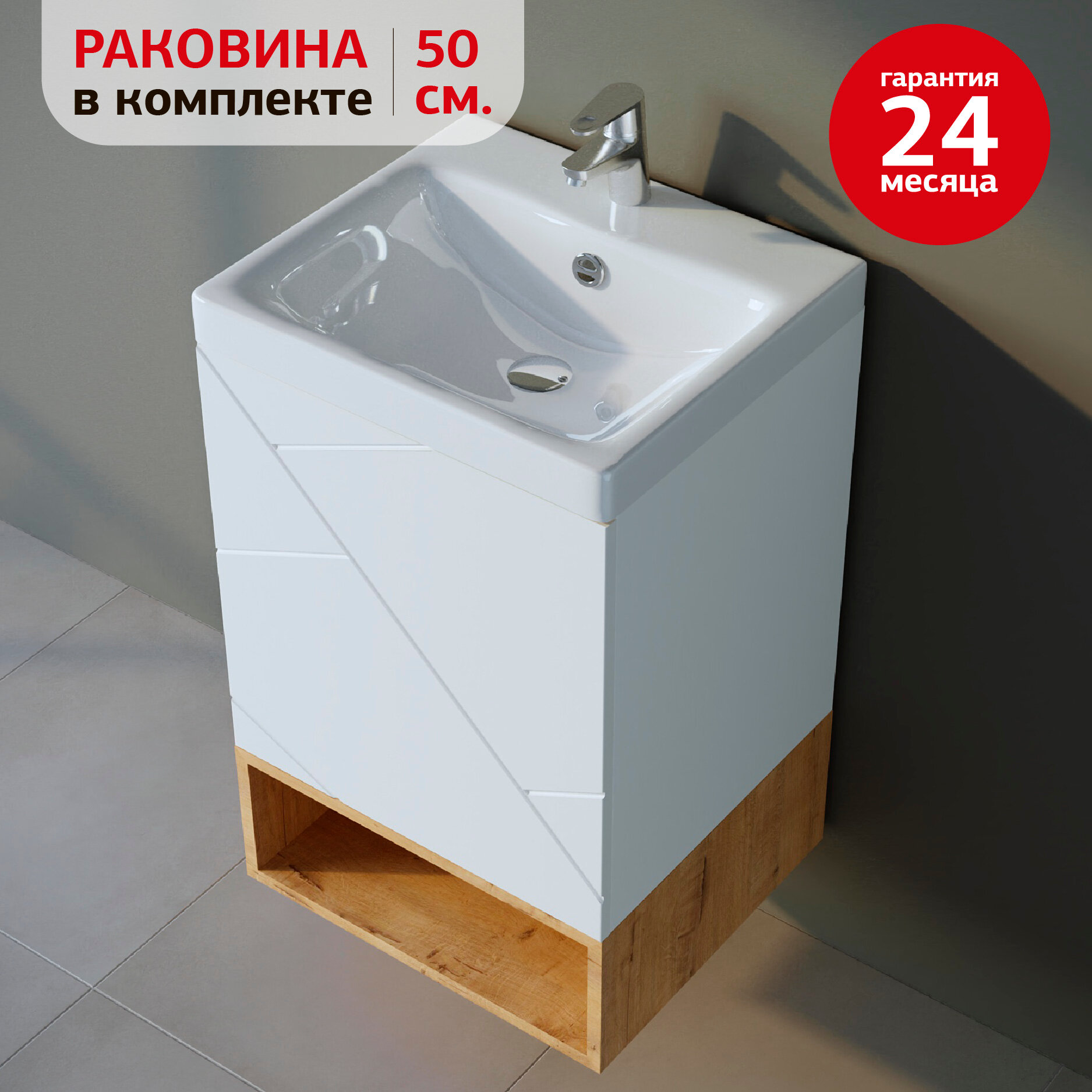 10 цен на Тумба с раковиной для ванной Кристалл 50 белая, с нишей