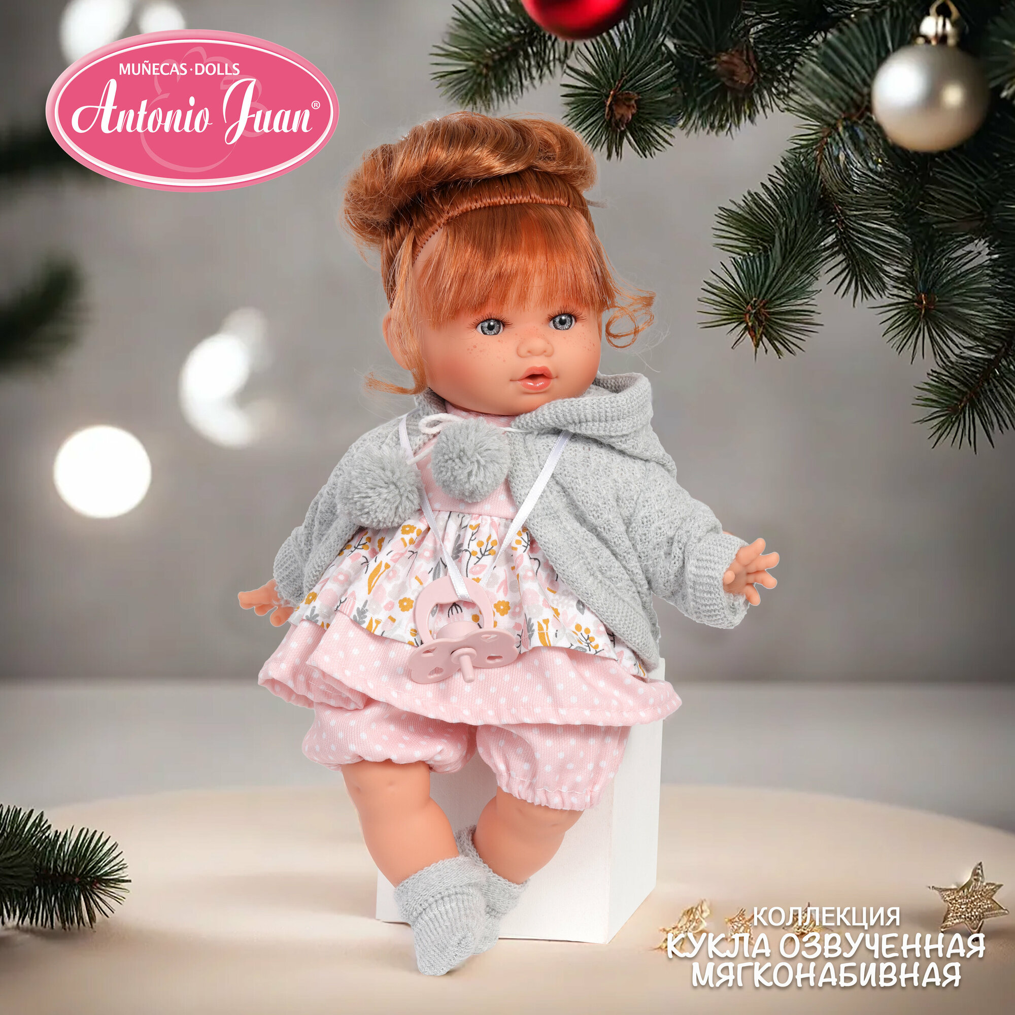 Кукла говорящая мягконабивная ANTONIO JUAN 13145 Ава в сером, 30см,плачет,с соской,с одеждой и аксессуарами, испанские куклы, подарок на день рождения информация: