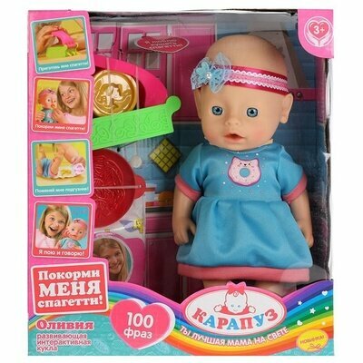 Пупс интерактивный Оливия 35см - 100 фраз, аксессуары Карапуз