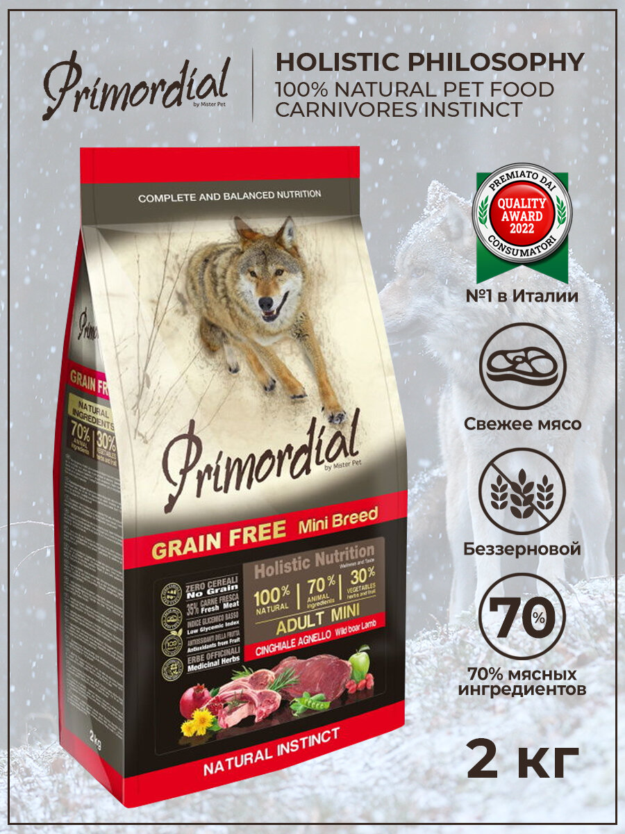 PRIMORDIAL MINI ADULT 2кг корм сухой для собак мелких пород беззерновой кабан ягненок