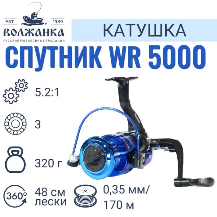Катушка рыболовная безынерционная "Волжанка Спутник WR 5000" (3 подш);(0.35мм/170м)/Катушка для рыбалки информация: