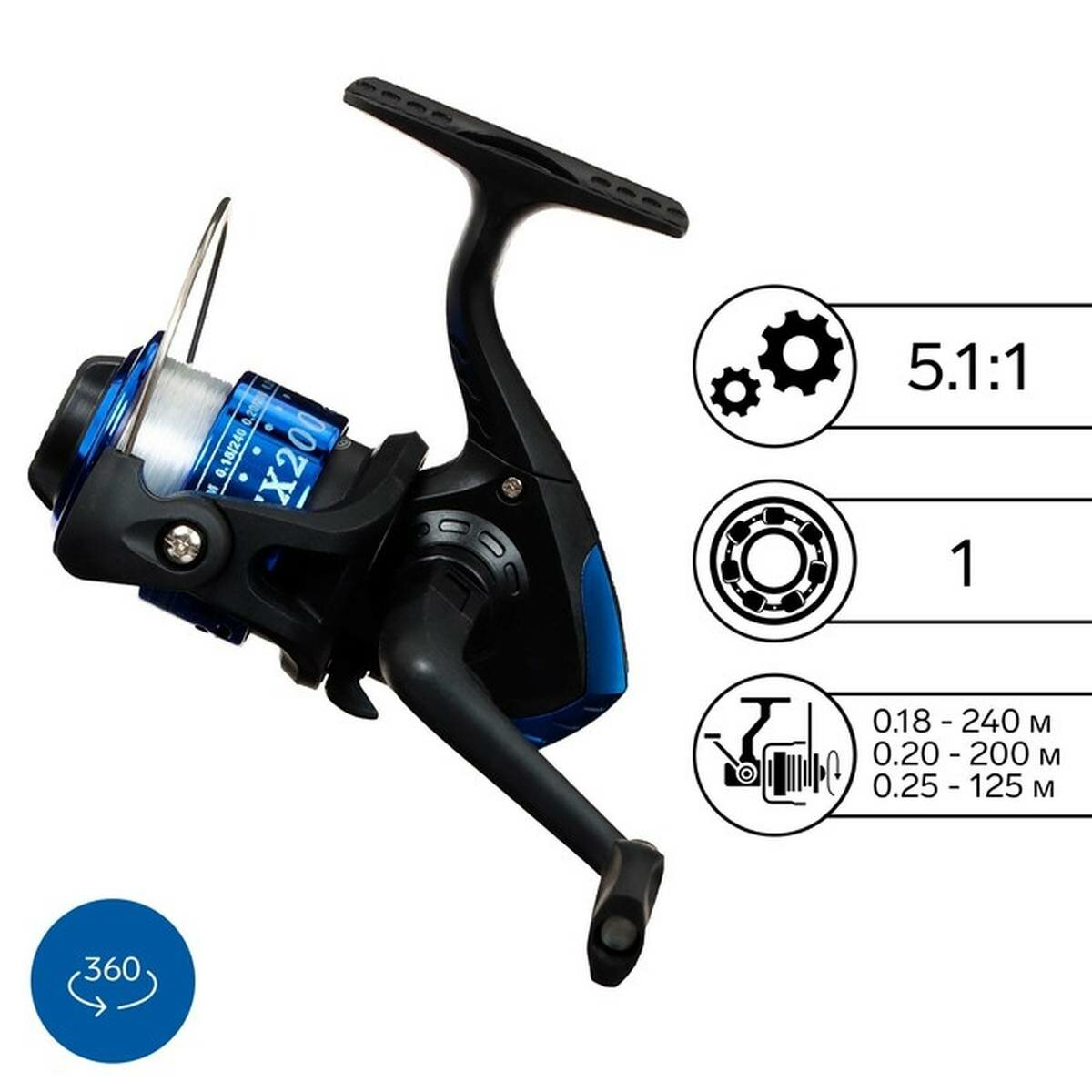 Катушка оснащённая FX200, 1 подшипник, 5.1:1, пластиковая шпуля, синяя информация: