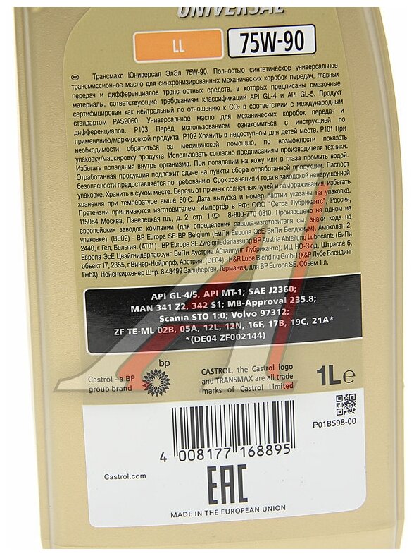 10 цен на Масло Трансмиссионное Castrol Transmax Universal 75W-90 1 Л 15D722 Castrol Арт. 15D722 Castrol арт. 15D722