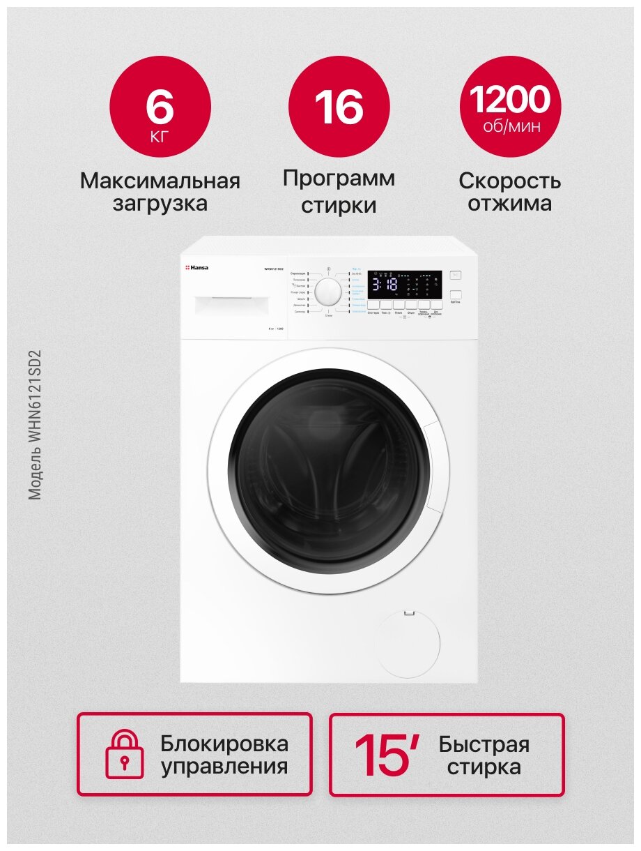 Стиральная машина Hansa WHN6121SD2, фронтальная, 6кг, 1200об/мин 41 470 ₽