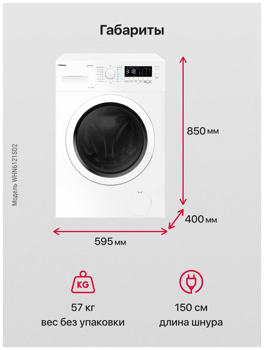 Стиральная машина узкая Hansa WHN6121SD2, с фронтальной загрузкой, 6кг, 1200об/мин 26 850 ₽