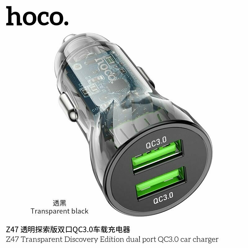 Автомобильное заряд. устр. Hoco Z47 2USB QC3.0 18W черный