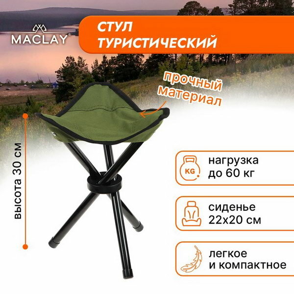 Стул туристический складной, р. 22х20х25 см, цвет зелёный информация: