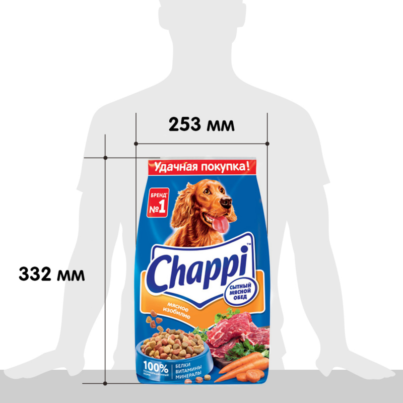 Корм сухой Chappi Мясное изобилие Сытный мясной обед для взрослых собак всех пород, 2.5кг информация: