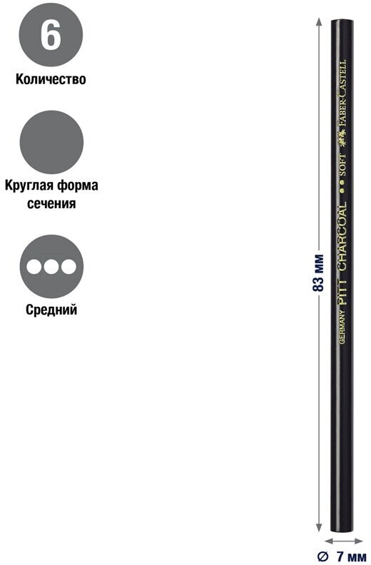 Угольный карандаш Faber-Castell Pitt, мягкий (117403) информация: